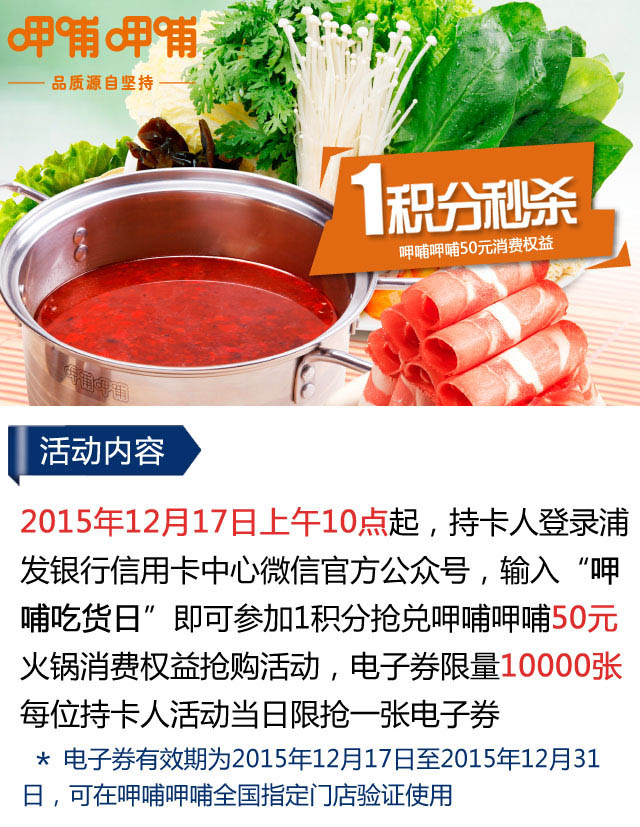 1积分抢兑呷哺呷哺50元消费权益