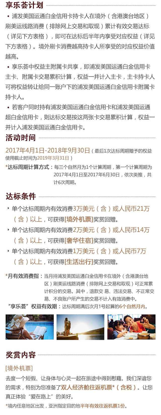 “享乐荟” 一赏再赏,让生活乐享无限!浦发美国运通白金信用卡